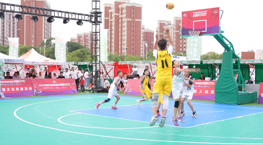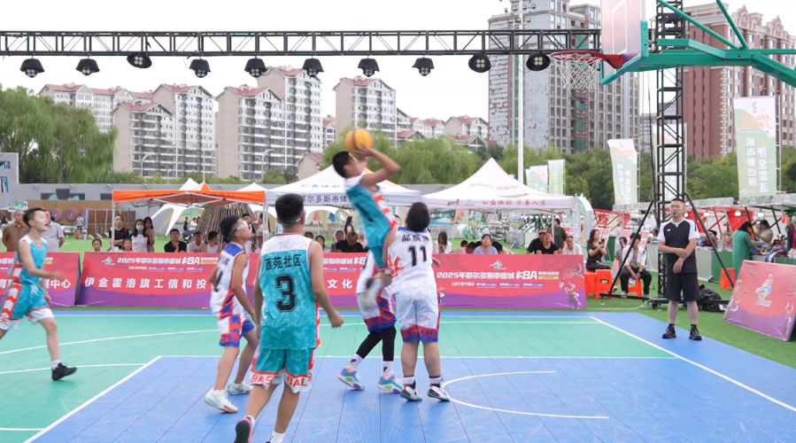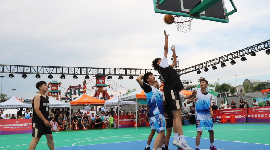 8月10日,伊金霍洛旗赛区的战火在阿勒腾席热镇郡王府广场点燃,31支社区及行政村代表队的217名爱好者投身三人制篮球赛。赛场上,球员们的表现精彩纷呈:疾速突破、贴身防守、远投三分,少年组小将灵动穿梭于赛场,成人组猛将则强攻篮下。10秒内完成进攻的高强度赛制,让每一次得分都极具张力,瞬间引爆全场欢呼。汗水浸透的球衣,不仅见证着球员们的拼搏,更承载着为社区荣誉而战的决心。赛场外同样热闹非凡,抓棍游戏、亲子跳绳、少儿搏克擂台等趣味项目吸引众多市民参与,篮球的激烈节奏与阵阵欢笑声交织,成为全民健身的生动注脚。